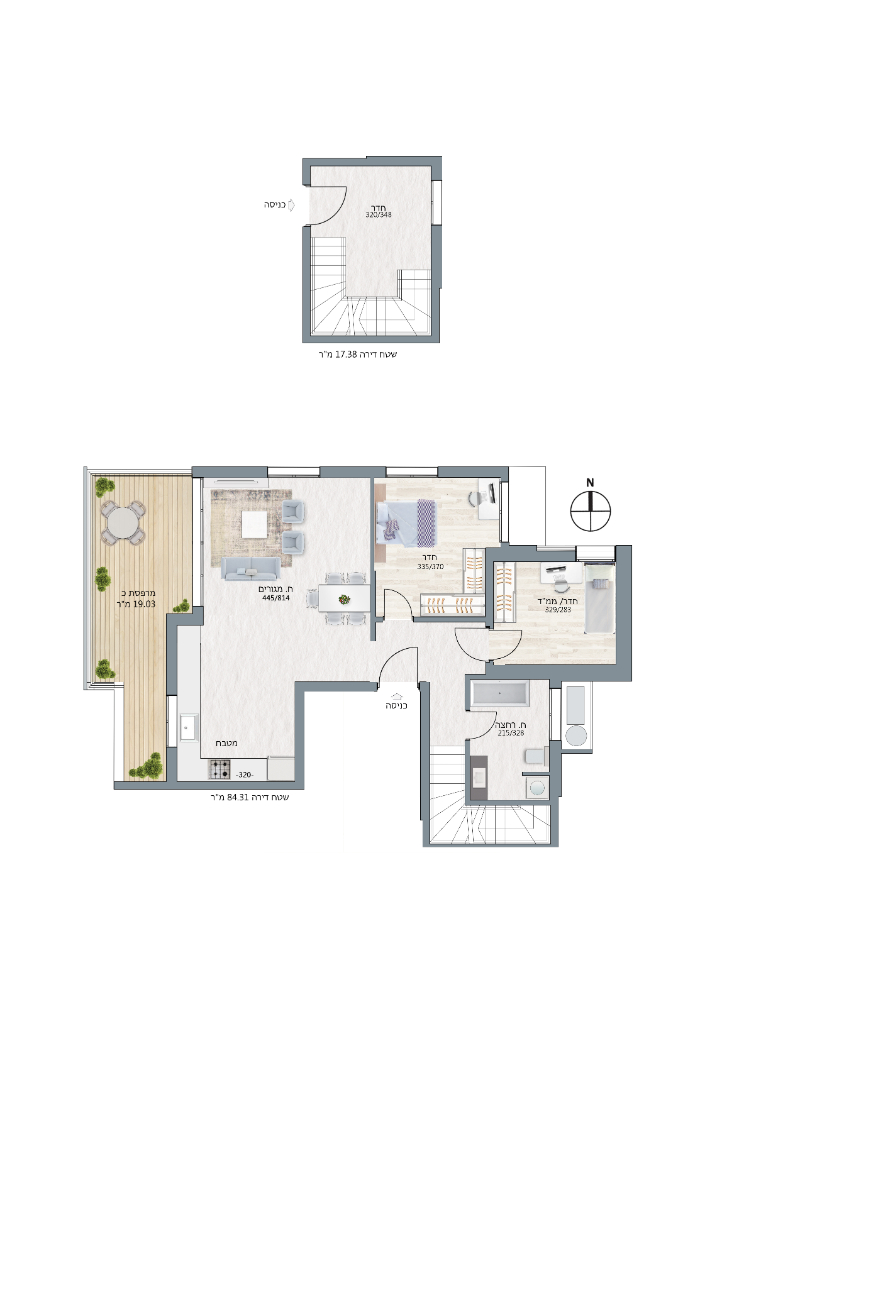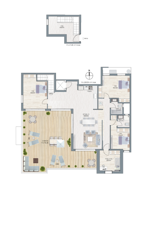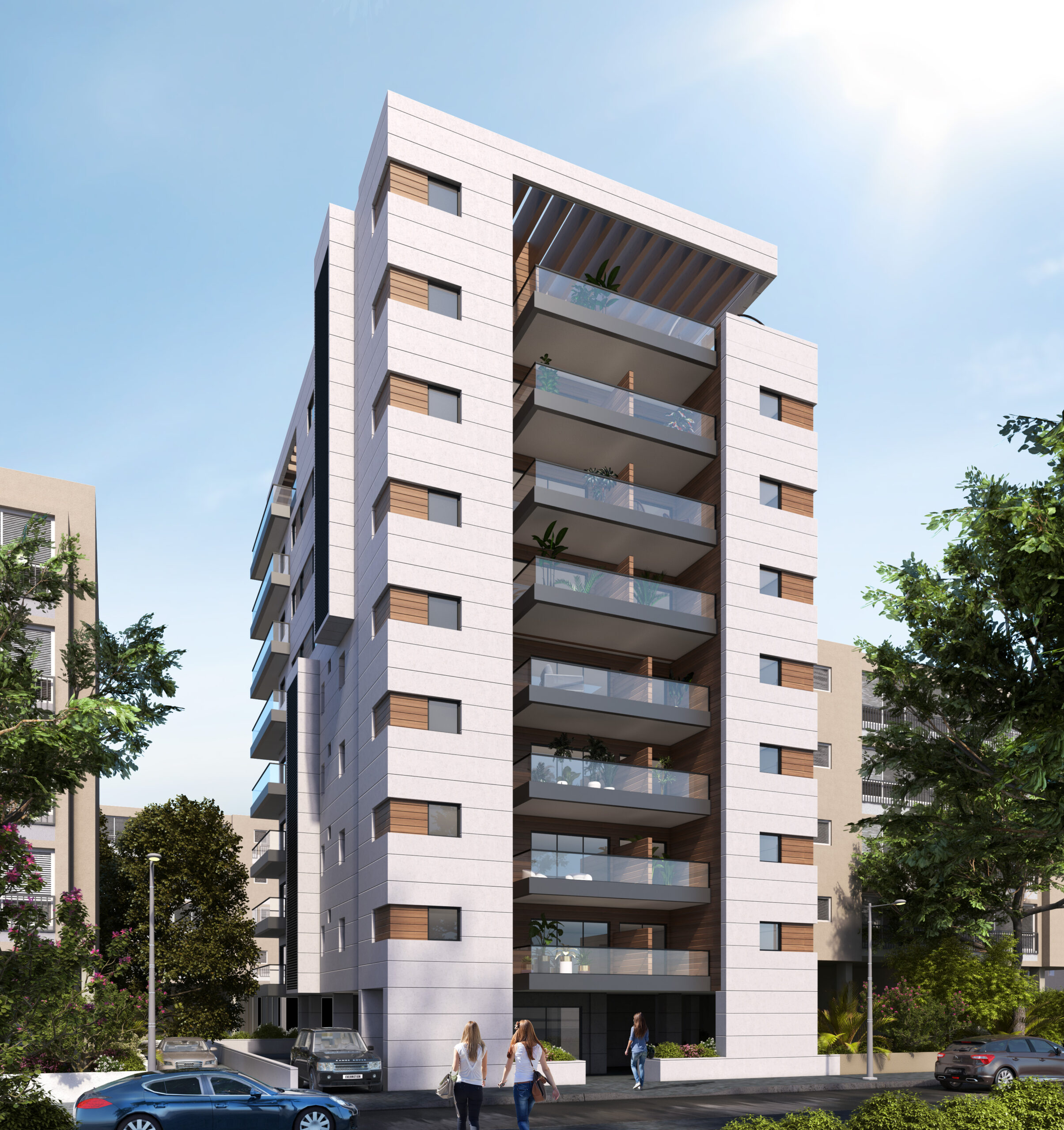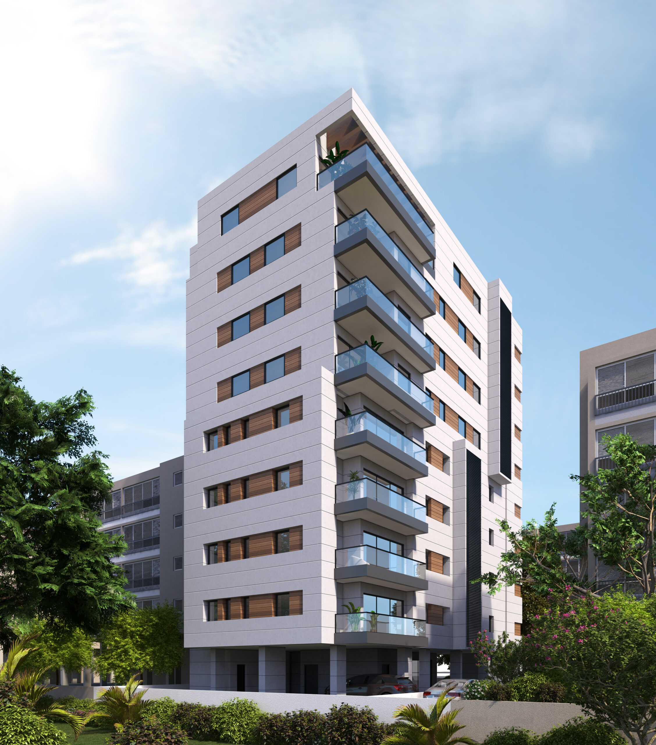 בבניין דירות 3 חדרים ו 4 חדרים בקומות 5 עד 7 בסטנדרט גימור גבוה, וכן דירות דופלקס פנטהאוס בקומות 7-8.